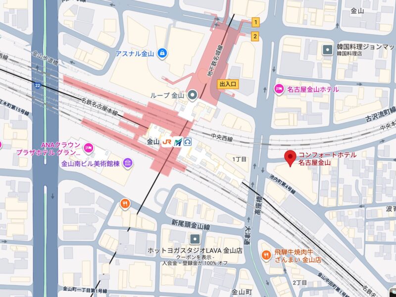ここでは、金山駅周辺のアクセス面やグルメ・雰囲気について紹介していきます。