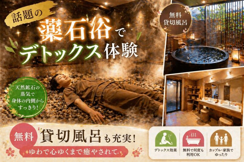 【糸柳こやど ゆわ】薬石浴と無料貸切風呂でデトックス