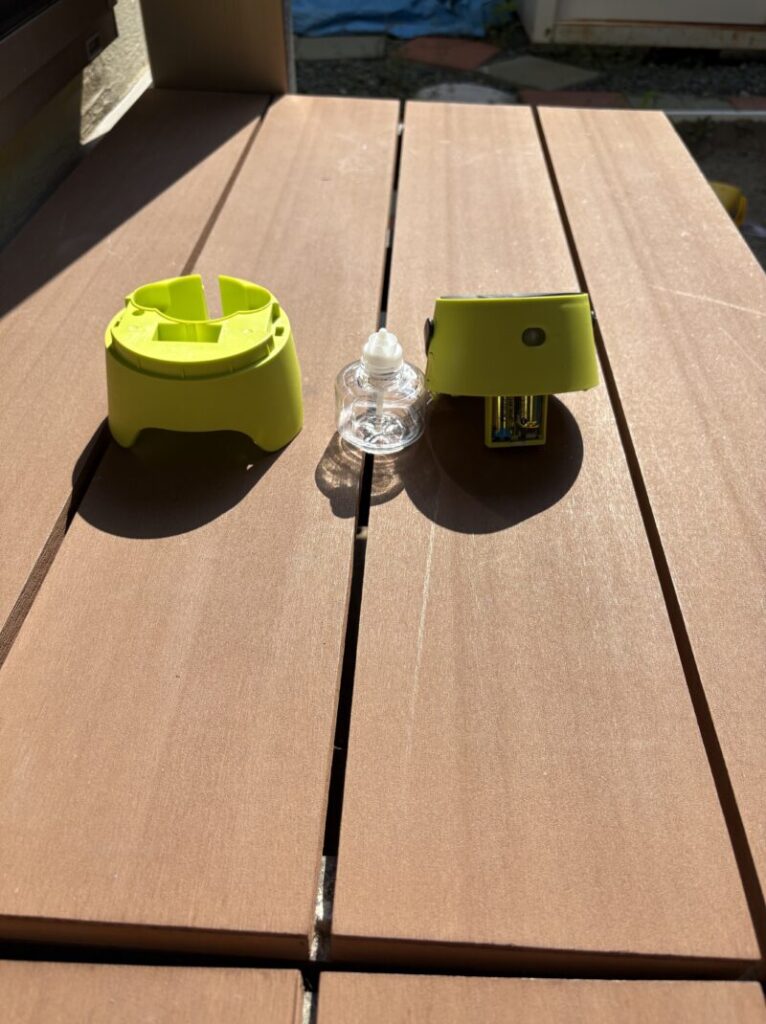 そんなときに出会ったのが薬液ボトルを専用の超音波振動式噴霧器に取り付けて使う電池式蚊取り器「KAKOI」です。
