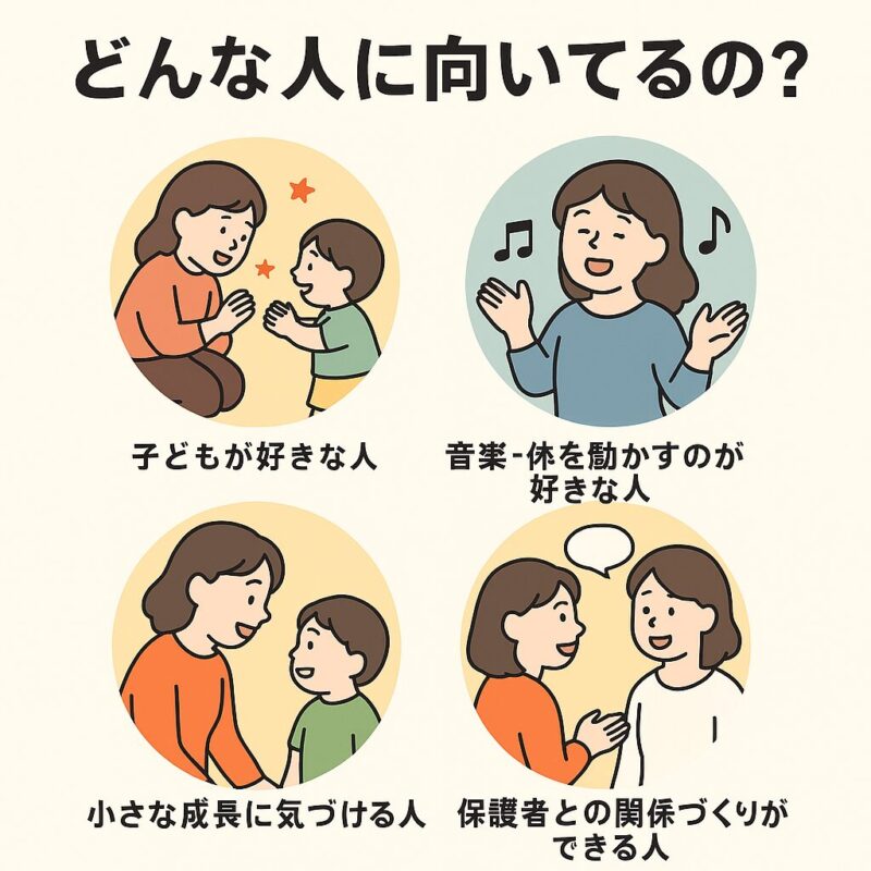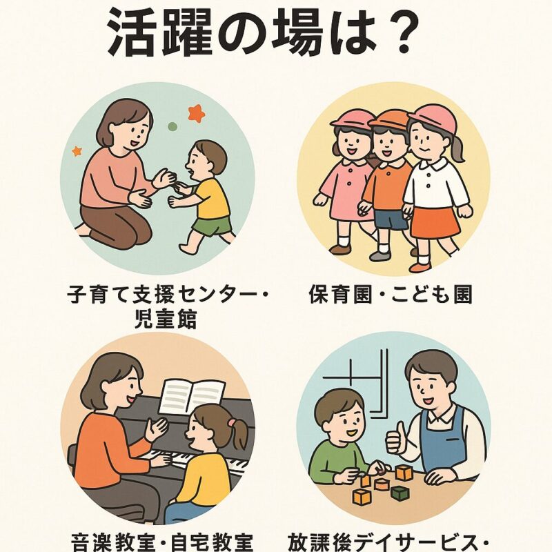 音楽とふれあいながら、子どもの「いま」と「未来」に寄り添える仕事です。